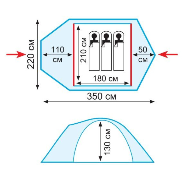- Зовнішній тент намета стійкий до ультрафіолетових променів