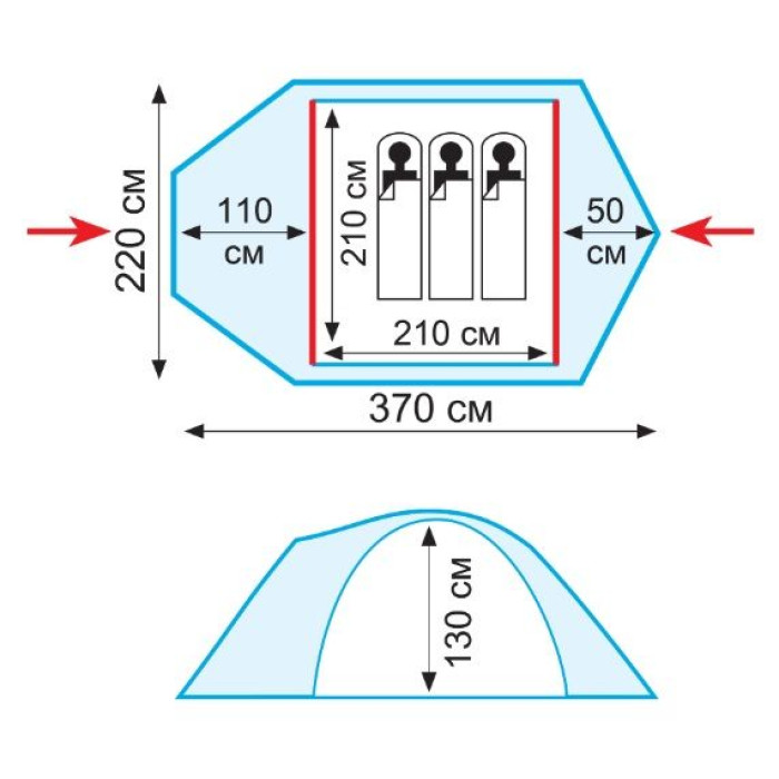 - Матеріал внутрішнього намета: 100% дихаючий polyester