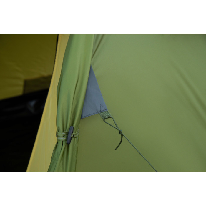 Тримісний туристичний намет Tramp Lite Twister 3 з трьома входами: два через просторий збільшений тамбур і один через задню торцеву стіну.