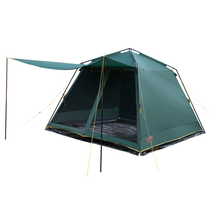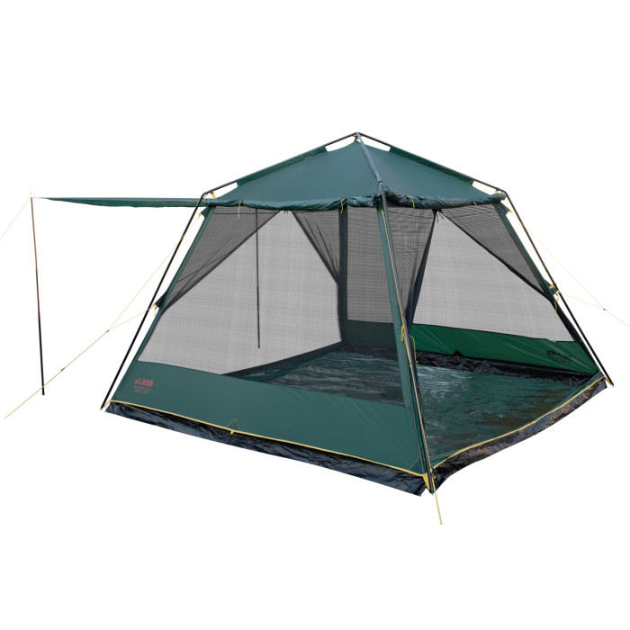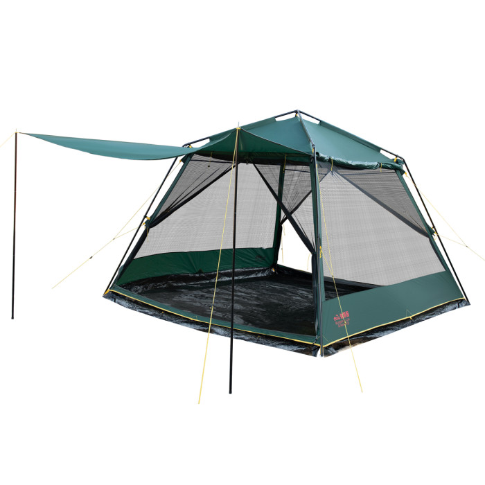 Кемпінговий тент-шатро чотиригранної форми на міцному сталевому каркасі зі стінками з протимоскітної сітки для організації, кухні, столової чи кают–компанії в кемпінговому чи туристичному таборі.
