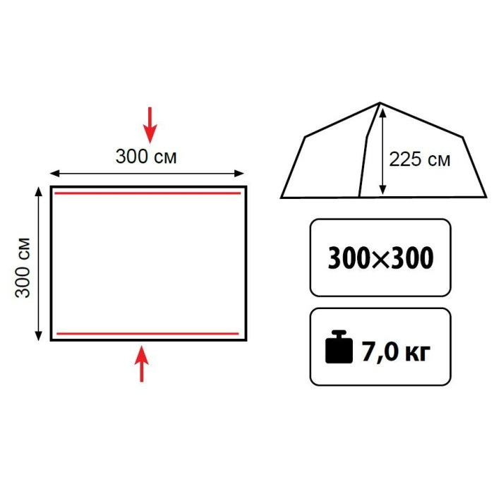 - Тент: 100% поліестер 75D/190T WR PU 4000 мм. в. ст.