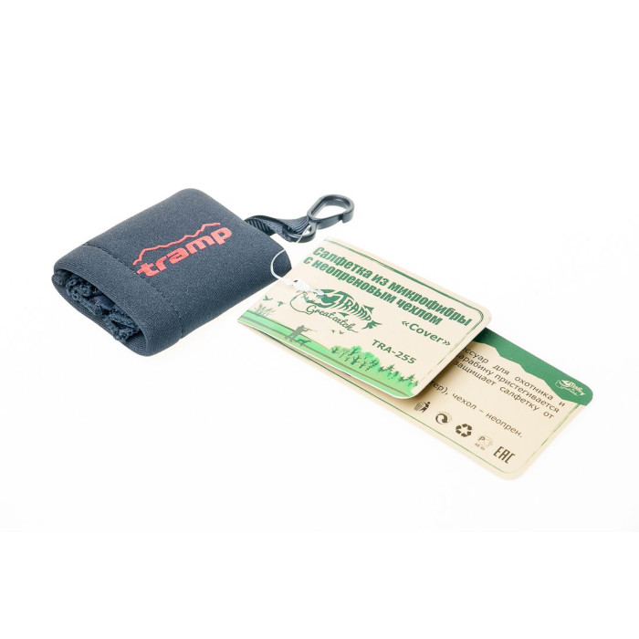 Серветки Tramp TRA-255 в неопреновому чохлі на допоміжному карбінчіке призначена для оперативного догляду за мисливським або рибальським спорядженням.