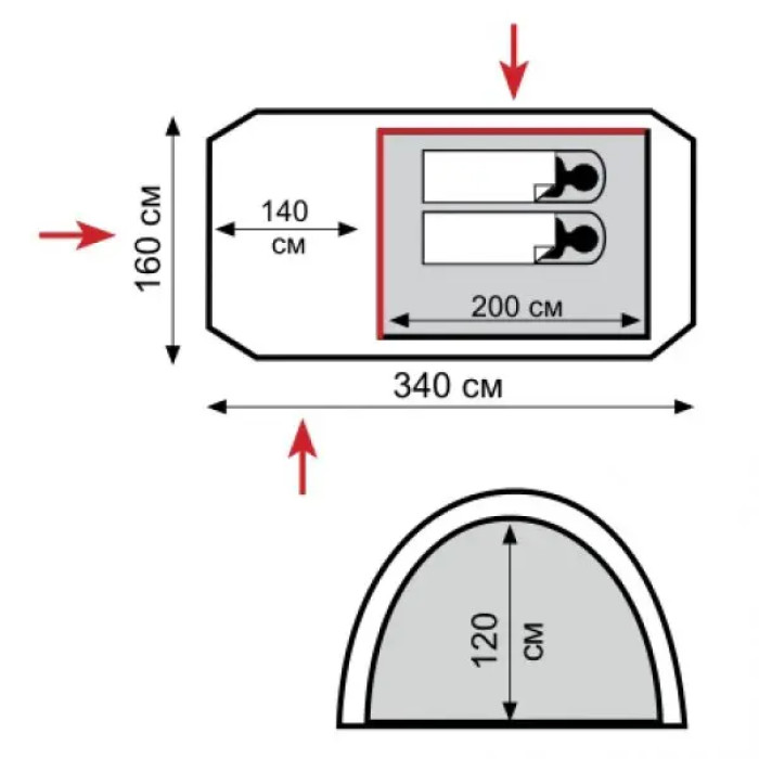 - Тент: 100% поліестер 75D190T RipStop, PU 4000 мм в. ст.