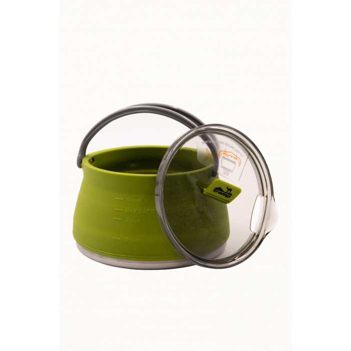 Легкий компактний складаний туристичний чайник зі стінками з термостійкого харчового силікону і дном з нержавіючої сталі. Стінки чайника виготовлені з ребр...