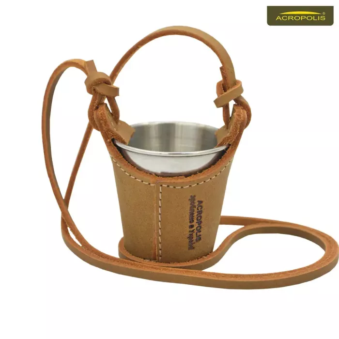 Невелика похідна склянка розроблена спеціально для грибників. Продається в чохлі з натуральної шкіри, який виконує функцію підстаканника та підвіски. Спереду сувенір оздоблений рельєфним тисненням з надписом "Я полюю на гриби". Оригінальний подарунок для любителів "тихого полювання".