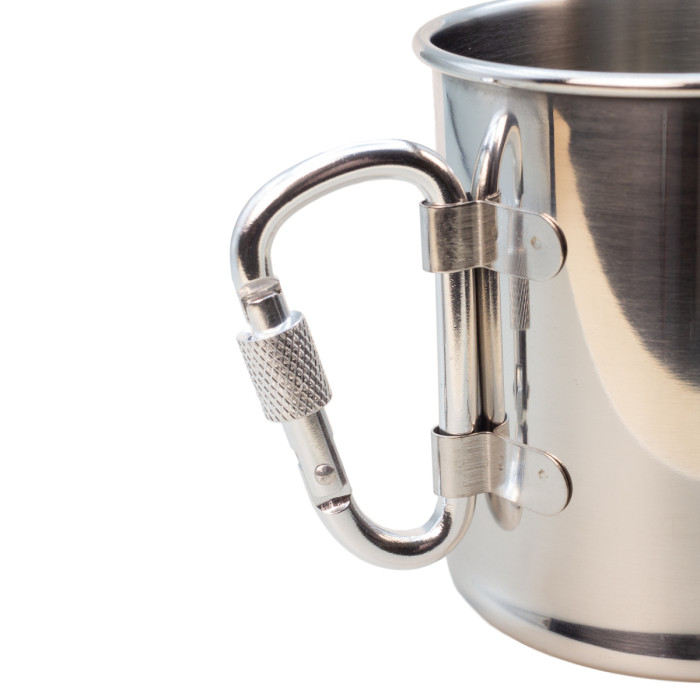 Горнятко з ручкою-карабіном 300 мл легко пристібається за карабін до поясу чи лямки рюкзака - ніколи не загубиться.