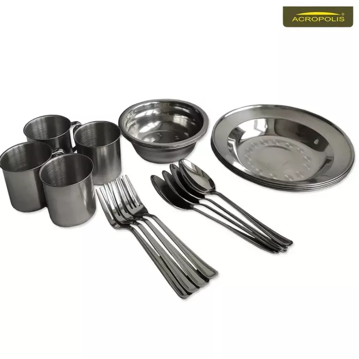 - столові прибори, тарілки, ложки - нержавіюча сталь.