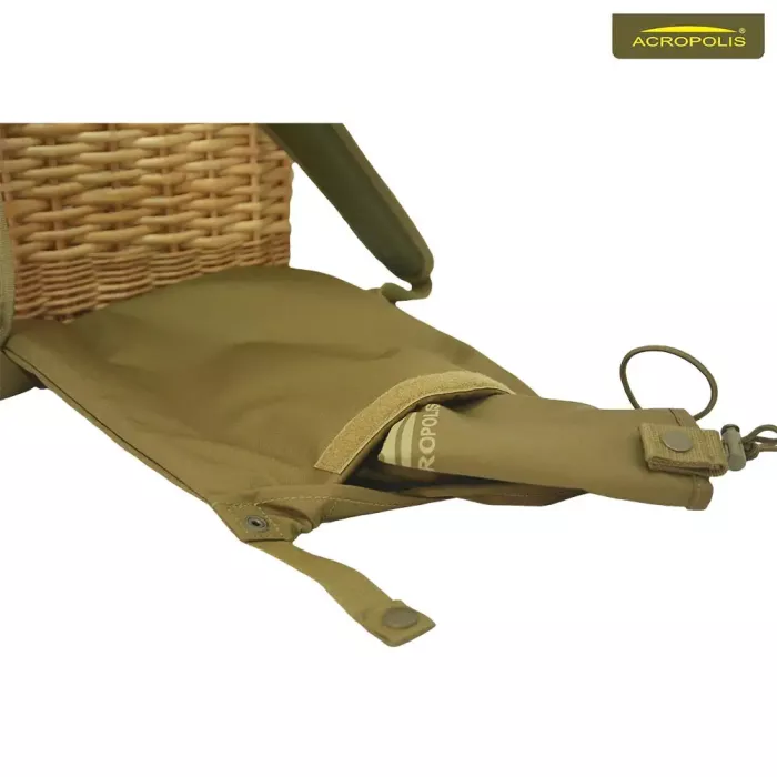 Накладна спинка є відчіпною і тримається за рахунок латунних кнопок, які не окислюються та міцної ремінної стропи з пластиковою фурнітурою.