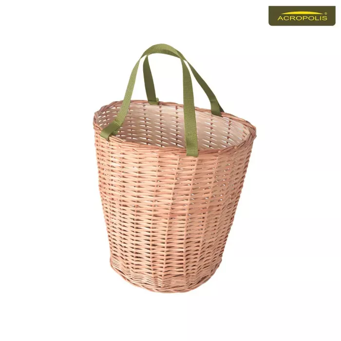 Місткий кошик на 27л оптимальної висоти та ширини для чоловіка і жінки. Одна сторона округлої форми, інша – пряма. Бік корзини не тисне на бедро і з нею комфортно пересуватися. З іншої сторони, кошик такого дизайну зручніше нести в руках за ручки, ніж класичний круглий чи овальний.