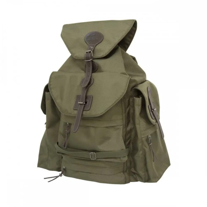 Продукти та речі складають в основний відсік, що стягується шнуром текстильним та закривається на клапан. Допоміжні мисливські аксесуари розміщають по бічних кишенях. Зовнішню кишеню переважно використовують для перенесення рушниці. Тут передбачені стропи текстильні з металевими пряжками для регулювання їх довжини та фіксації зброї до рюкзака, а також знизу ховається спеціальний чохол для утримання рушниці на рюкзаку. Три зовнішні кишені та центральне відділення закриваються шкіряними хлястиками, які кріпляться до металевих застібок.