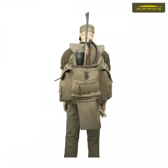 Мисливський рюкзак Acropolis РМ-2 середнього об'єму. Призначений для транспортування мисливських аксесуарів, речей та зброї. Може використовуватись як рюкзак на полювання, так і як туристичний рюкзак для походів в гори, рибалку чи пікнік.