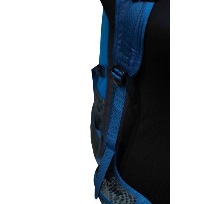 - 2 бокові компресійні стяжки (по 1 на кожній стороні) збільшеної довжини на застібках-фастексах для зовнішнього кріплення додаткового вантажа до бокових стінок рюкзака.