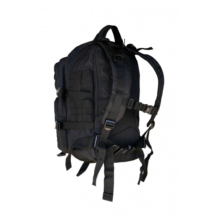 Завдяки нашитим із зовнішньої сторони стропам та петлям системи MOLLE рюкзак можна доповнювати необхідним спорядженням.