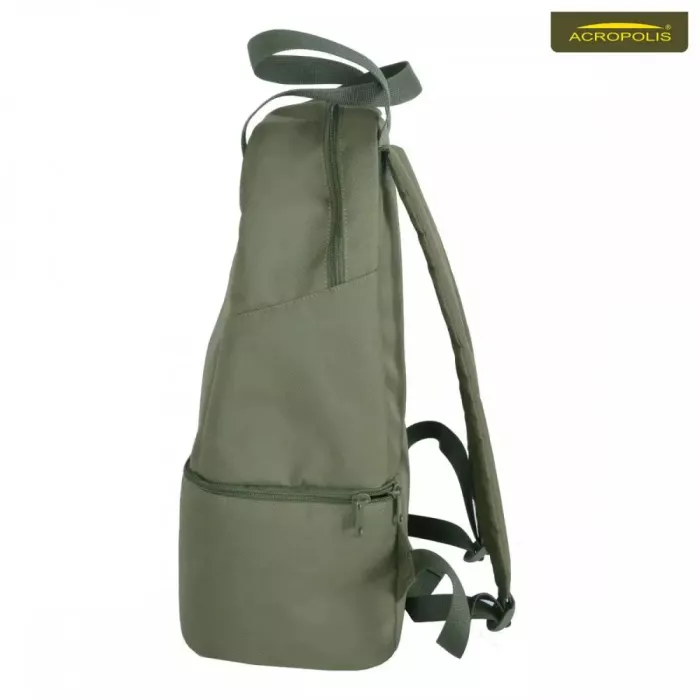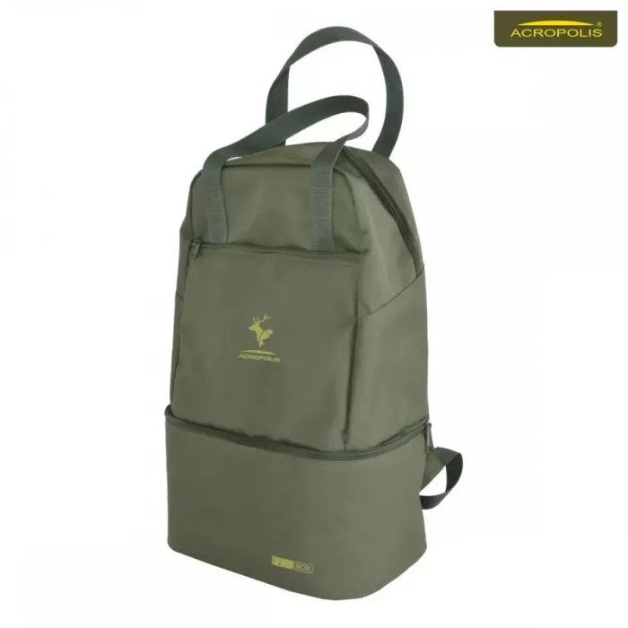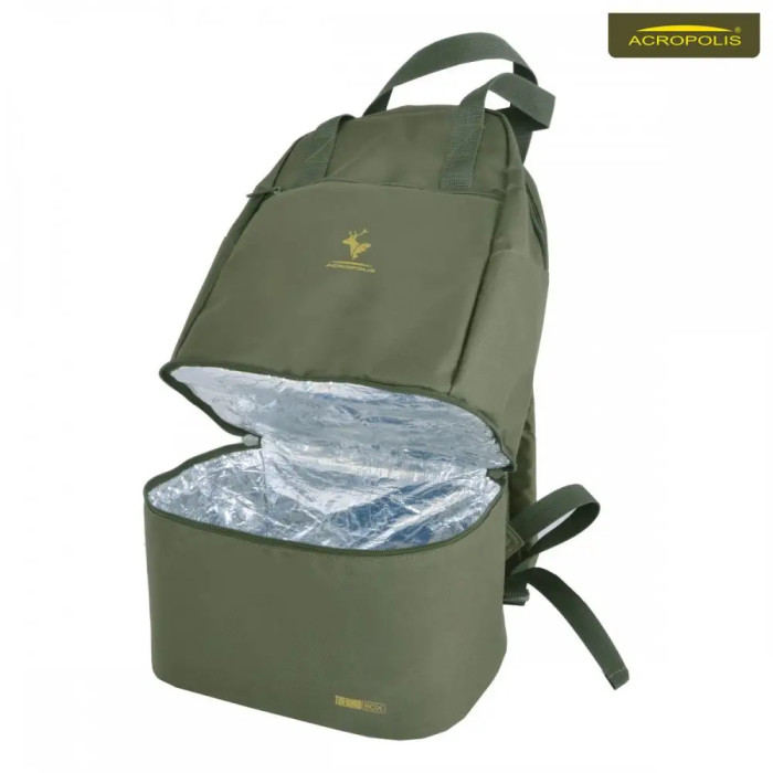 Компактний і функціональний терморюкзак ТРТ-1 Акрополіс для полювання, риболовлі та туризму складається з двох відділень. Верхнє відділення призначене для продуктів, які не потребують охолодження, а також одягу та спорядження. Нижнє відділення закривається на замок блискавку з двома бігунками. Це відділення має термозахист з внутрішнього шару пінополіетилену 10 мм і внутрішньої підкладки з фольгованого матеріалу. У комплект рюкзака входить акумулятор холоду. Він фіксується у термовідділенні за допомогою кріплень з еластичної стрічки. Рюкзак оснащений, що дуже зручно, подвійною, надійно пришитою ручкою для перенесення. ТРТ-1 має також зовнішню кишеню для дрібних аксесуарів. Рюкзак має регульовані лямки, в яких використана пластикова фурнітура італійської компанії Due Emme S.r.l.