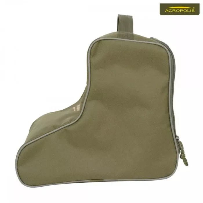 Виготовлена з міцної тканини. В середині - водовідштовхуюче покриття. Каркас сумки укріплений - вшитими спицями. Зверху пришита ручка для перенесення сумки в руках. Універсальна сумка Акрополіс СДО - 3 призначена для перенесення чобіт, черевиків. В основному використовується на рибалці, полюванні. Коли мисливець чи рибак починає переодягатись чи перевзуватись з мокрого взуття, його потрібно кудись покласти, так щоб не забруднити салон або багажник автомобіля. В такому випадку йому знадобиться свого роду захисна сумка, яка локалізує в собі бруд, болото, пісок, землю з підошви та верху взуття. Якщо Ви зібрались на полювання чи рибалку на декілька днів і взяли декілька пар різного взуття, упакованого в сумки. Ви легко відрізните, де яка пара. Адже на сумці виділене спеціальне місце для вкладки з назвою, свого роду - ідентифікатор. Acropolis СДО-3 одна із різновидів мисливських та рибацьких сумок для одягу та взуття. Потрібна річ для активних і енергійних людей, які люблять проводити час на природі.