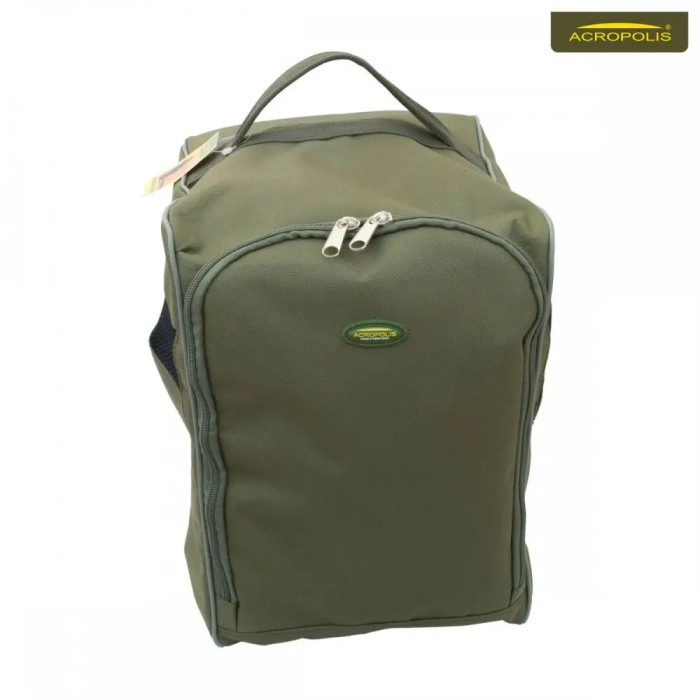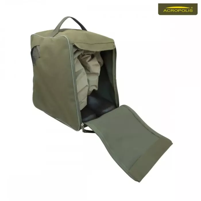 Сумка для транспортування чобіт і вейдерсів СДО-2 розроблена компанією "Акрополіс". Має вентиляційні отвори. Укомплектована килимком для перевзування на водоймі, який зберігається в спеціальній кишені. З нашої сумкою Ви забезпечите собі комфортне перевзування на водоймі, збереження взуття і чистоту в вашій машині!