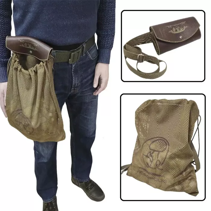 Дуже зручна складана сумка для збирання грибів, горіхів, фруктів. Можна використовувати і як сумку "шопер" для покупок. Носять на поясі або на плечі. Для цього пришиті 2 кріплення на пояс, а в комплект входить плечовий ремінь.