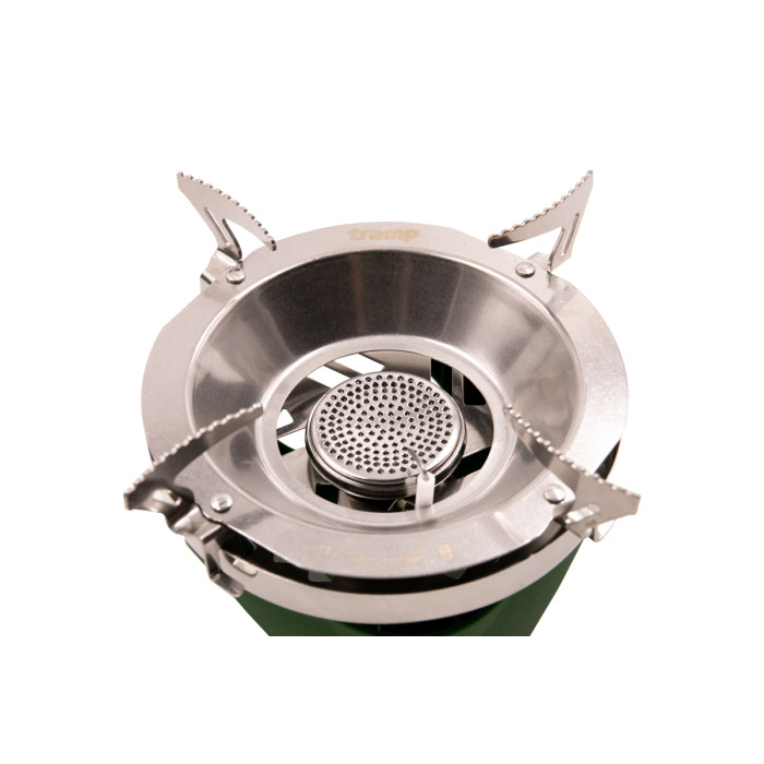 в комплект входить підставка під всі типи та обсяги різьбових газових картриджів, що збільшує площу опори, і як наслідок стійкість системи при готуванні на нерівній поверхні;