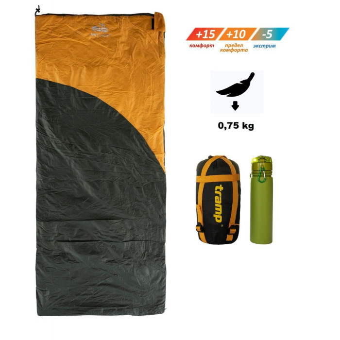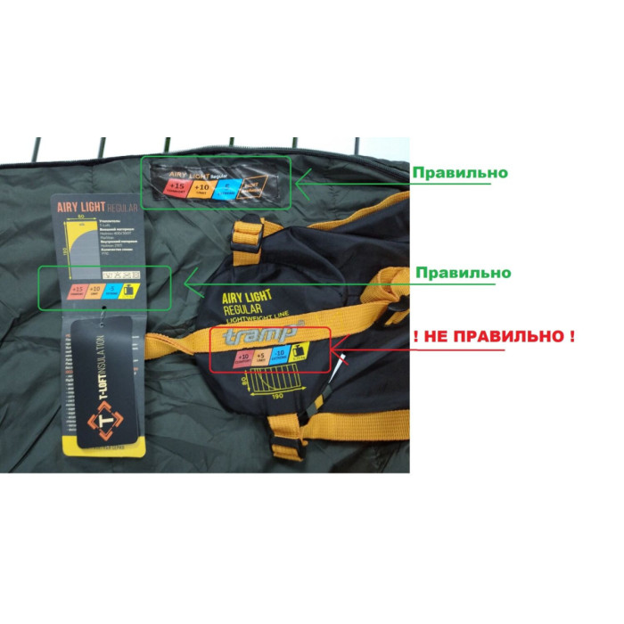 Утеплювач: В спальнику Tramp Airy Ligh використовується мікро-волоконний утеплювач T-loft. T-loft відноситься до нового покоління синтетичних утеплювачів, які працюють за принципом натурального пуху (аналог утеплювачів PrimaLoft, BHB micro). Супертонкі нитки двох різних конфігурацій (спіралеподібні і прямі), оброблені синтетичним полімером, з'єднані випадковим чином, наближають фактуру і ізоляційний ефект матеріалу до властивостей натурального пуху. Добре відновлюється після стиснення. Гіпоалергенний. Зберігає тепло навіть у вологому стані.
