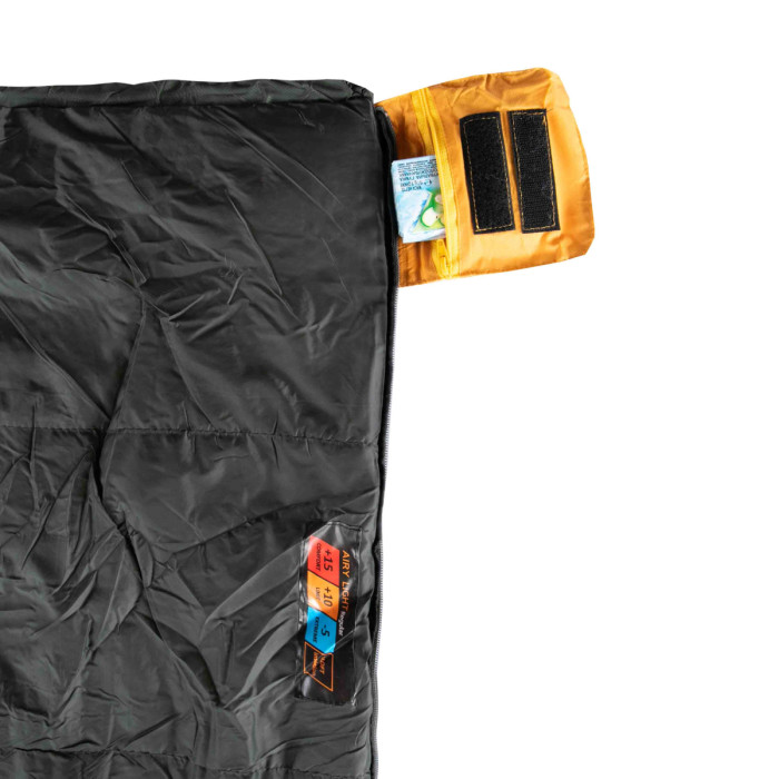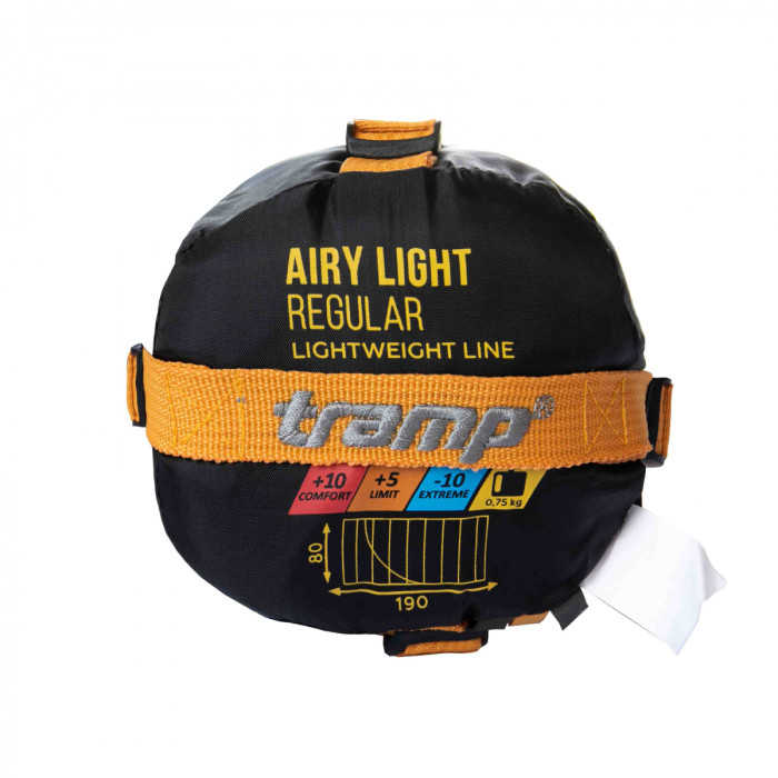 Утеплювач: В спальнику Tramp Airy Ligh використовується мікро-волоконний утеплювач T-loft. T-loft відноситься до нового покоління синтетичних утеплювачів, які працюють за принципом натурального пуху (аналог утеплювачів PrimaLoft, BHB micro). Супертонкі нитки двох різних конфігурацій (спіралеподібні і прямі), оброблені синтетичним полімером, з'єднані випадковим чином, наближають фактуру і ізоляційний ефект матеріалу до властивостей натурального пуху. Добре відновлюється після стиснення. Гіпоалергенний. Зберігає тепло навіть у вологому стані.