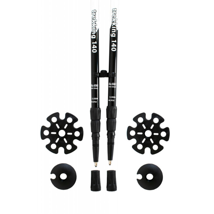 Трекінгові палиці Tramp TREKKING 140 пара - прості і міцні трисекційні трекінгові палки з цанговим (внутрішньо-розпірним) механізмом регулювання довжини. Рельєфна рукоять з морозостійкого пластика з широким темляком регульованим по довжині. Кожна пара палиць укомплектована парою великих і маленьких кілець з щільною морозотривкої гуми і гумовими ковпачками для наконечників, що дозволяє використовувати палиці на різних рельєфах грунту круглий рік. Наконечники палок TRAMP зроблені зі зносостійкої, високовуглецевої сталі.