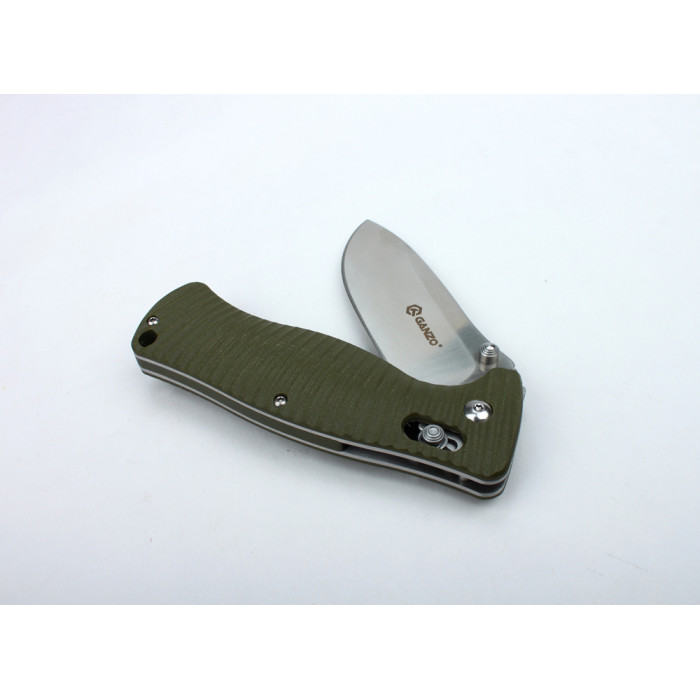 Для накладок на рукоятку ножа виробники використовували сучасний вид пластику високої міцності під назвою G10. По суті, він являє собою композитний матеріал з епоксидних смол і склотканини. Цей матеріал володіє високою міцністю, добре витримує удари, протистоїть волозі і довгий час зберігає яскравий колір. Рукоятка ножа Ganzo G720 нерівна. Така форма одночасно грає роль елемента дизайну і сприяє надійному утриманню.