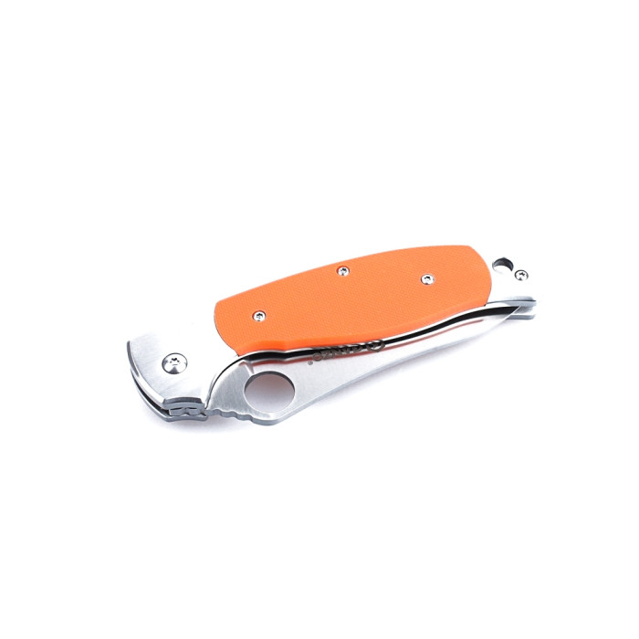 Відкрити ніж можна за допомогою наскрізного отвору в клинку, а щоб знову скласти, необхідно відсунути в бік притискну пластину замку Liner, який розміщений усередині рукояті ножа.