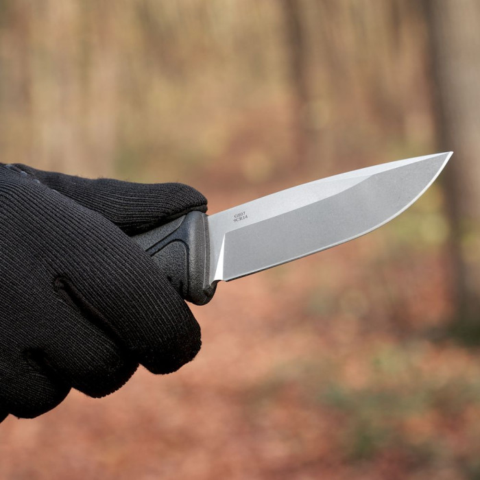 Матеріал клинка — вуглецева сталь 9CR14. Марка є одним із різновидів мартенситної сталі з високою опірністю до окислення та корозії. Серед інших переваг цього металу: тривале утримання гостроти прямого леза та стійкість до зношування, завдяки чому марка повсюдно використовується європейськими та американськими брендами у виробництві різальних інструментів. Після термообробки сталь набуває еталонної твердості на рівні ±59 HRC, що також продовжує її експлуатаційний термін.