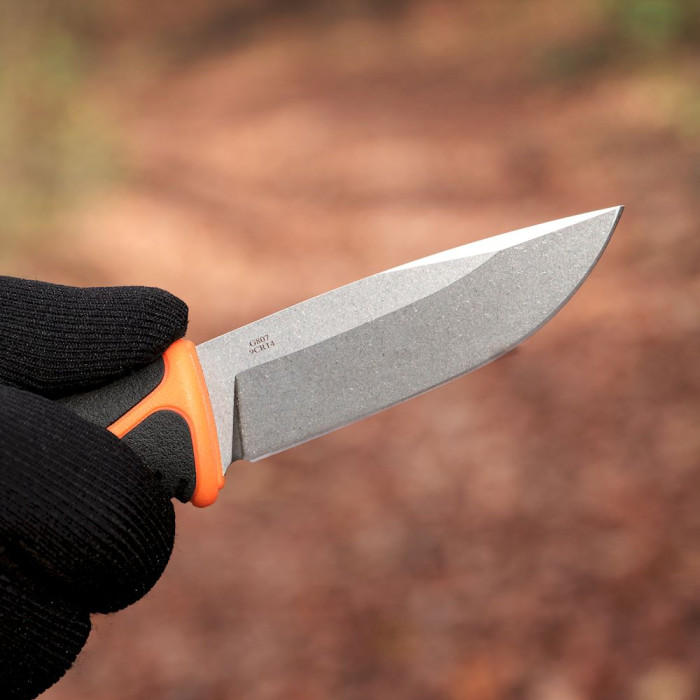 Дизайн G807 перегукується з аналоговою моделлю G806. Однак дрібні зміни в конструкції дозволили досягти більшої ергономічності. Інструмент оснащений 88-міліметровим клинком. Його класичний профіль Drop Point демонструє ефективність у завданнях різного типу — від різання харчових продуктів і заточування дерев'яних кілочків до проколювання тканин або виробів з пластику. Товщина обуха 3.3 мм забезпечує клинку стійкість до високих навантажень та запобігає його деформуванню.