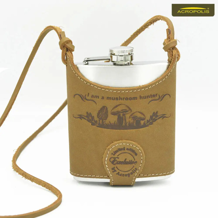 Фляга металева в шкіряному чохлі «I am a mushroom hunter» Acropolis FL-1g