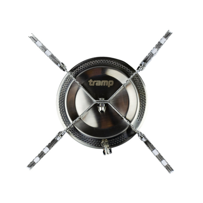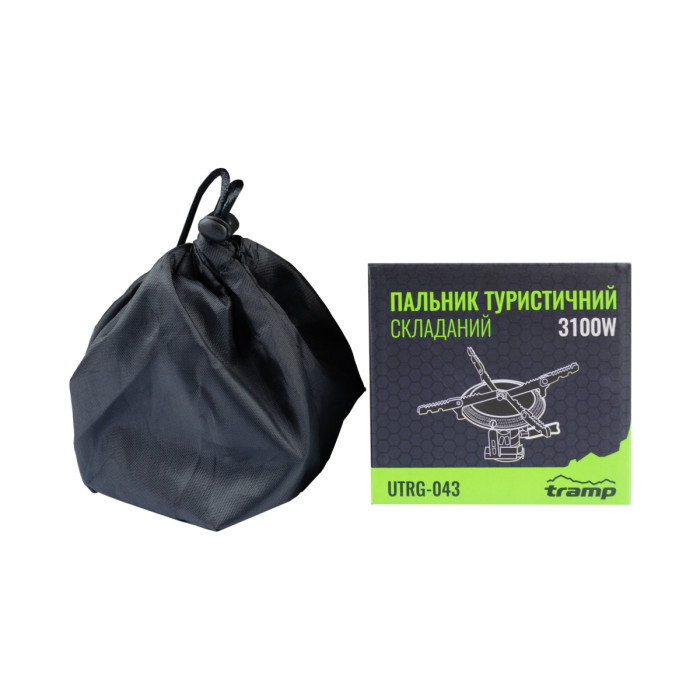 Потужний газовий пальник Tramp UTRG-043, що нагвичується на різьбовий балон, з широкою робочою частиною конфорки, розкриваючимися «лапками» - тримачі яких дозволяють використовувати посуд з широким діаметром дна об'ємом до 5-6 літрів.