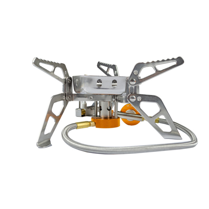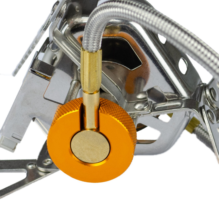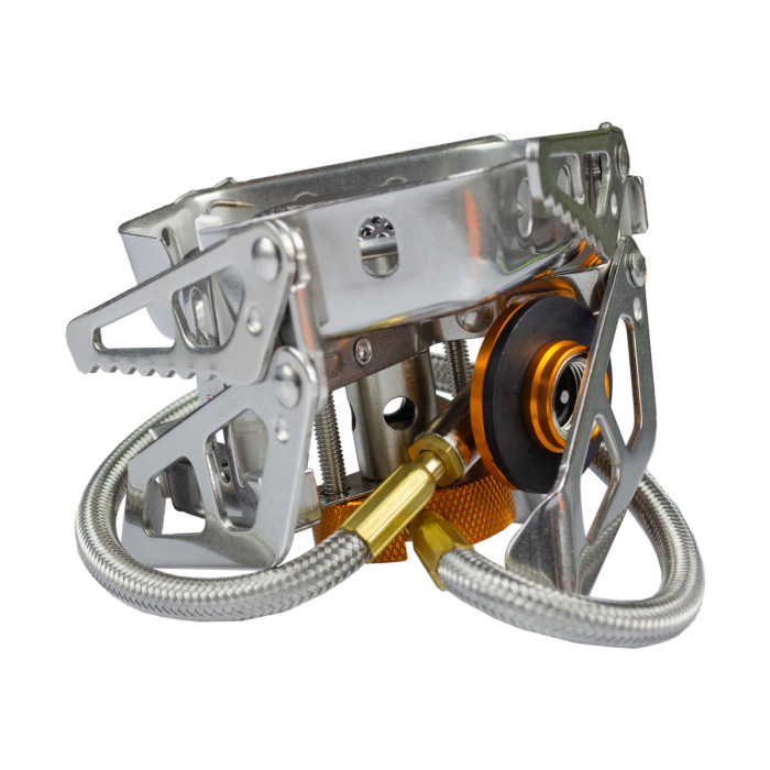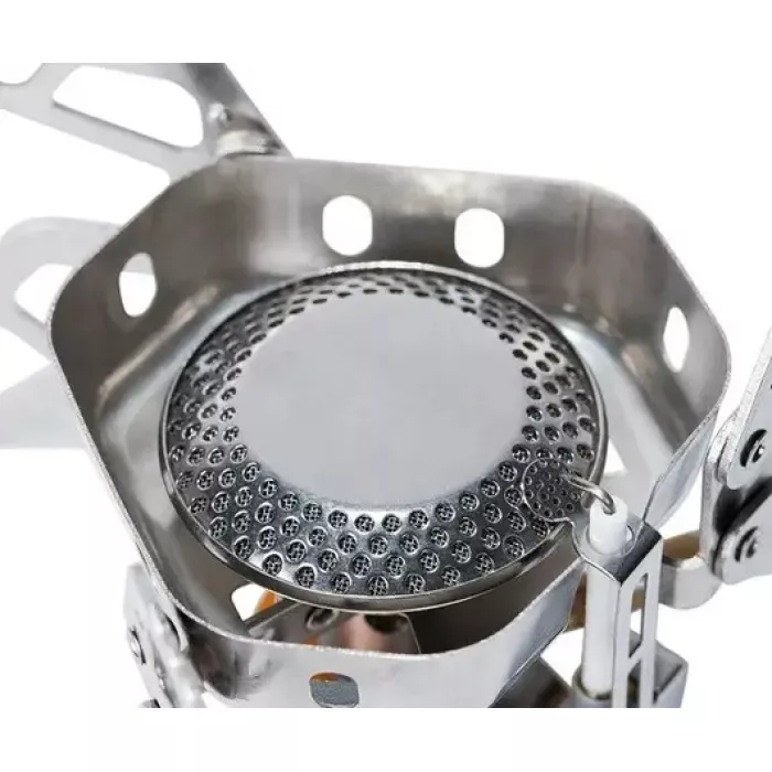 Особливості: Конфорка додатково захищена вбудованим вітрозахисним екраном, який також збільшує ККД моделі та забезпечує дододатковий захист шланга від відзеркаленого полум'я. Забезпечений вбудованим п'єзопідпалом.