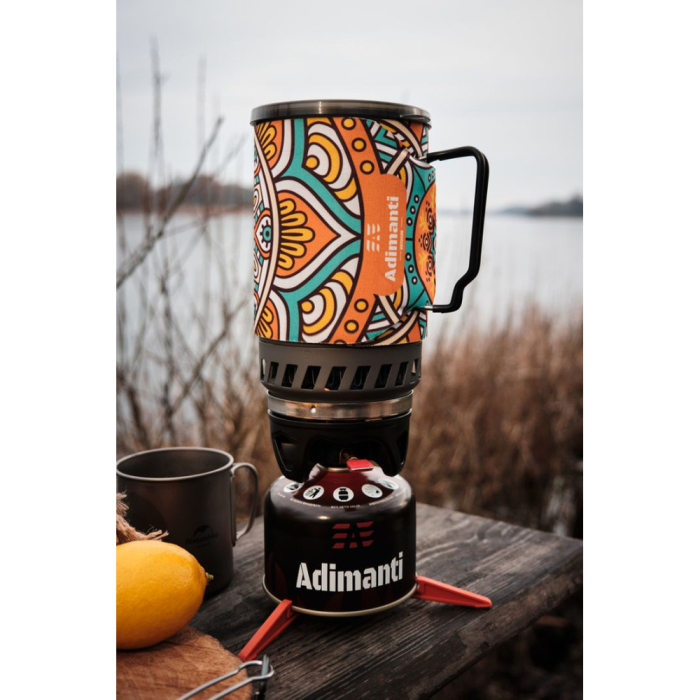 Газовий балон у наборі не передбачено. Працює система на пропані. Спосіб запалювання – електронне запалення. Максимальна ємність досягає 1400 мілілітрів. Нижню частину ви можете як з'єднати з каструлею, так і видалити, якщо в цьому є необхідність. Вогонь не гасне під поривами вітру, тому не потрібно додатково купувати блокувальник вітру. Спеціальна ізолююча тканина допоможе уникнути опіків під час використання цієї системи.