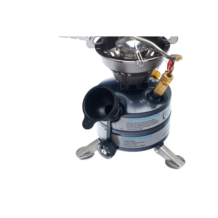 Де б ви не знаходилися пальник допоможе вам швидко і з легкістю приготувати їжу або підігріти воду. Потужність такої моделі досягає 2117 Вт. При цьому витрати пального становлять 185 грамів на годину. Місткість паливного баку дорівнює 450 мілілітрам. Розміри пальника: висота становить 174 міліметри, а довжина – 192 міліметри. Важить виріб 567 г.