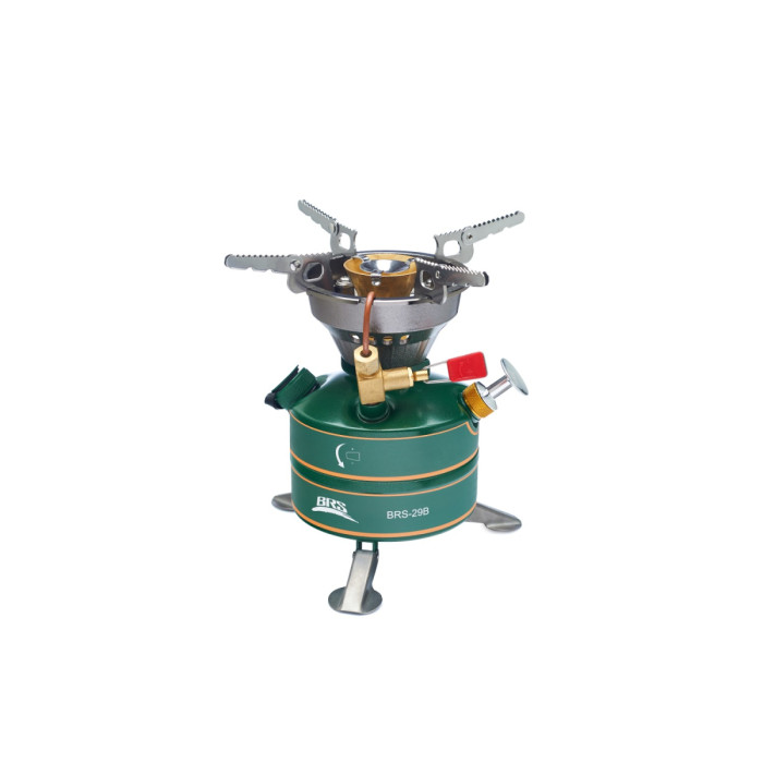 Рідкопаливний пальник BRS-29B без попереднього нагрівання. Паливом є 92-й неетильований бензин та вище (не входить до комплекту). У комплекті зручний пластиковий кейс. Завдяки оновленій конструкції - зменшено кількість забруднень після згоряння палива. Важить 604 грами. У складі виробу такі матеріали, як сплав алюмінію та магнію, нержавіюча сталь та мідь. Витрата палива становить 185 грамів на годину, а потужність пальника досягає близько 2120 Вт. Максимальний об'єм: 450 мілілітрів.