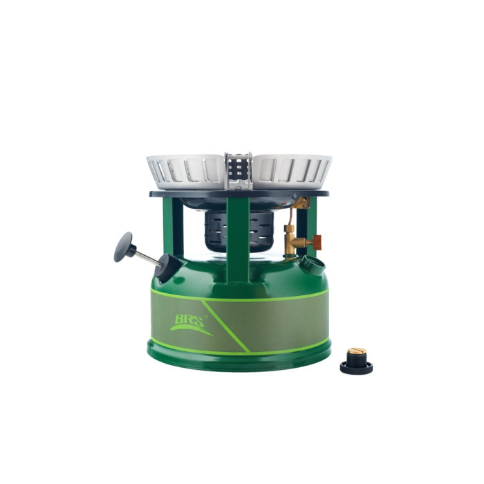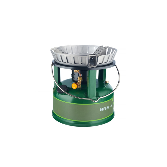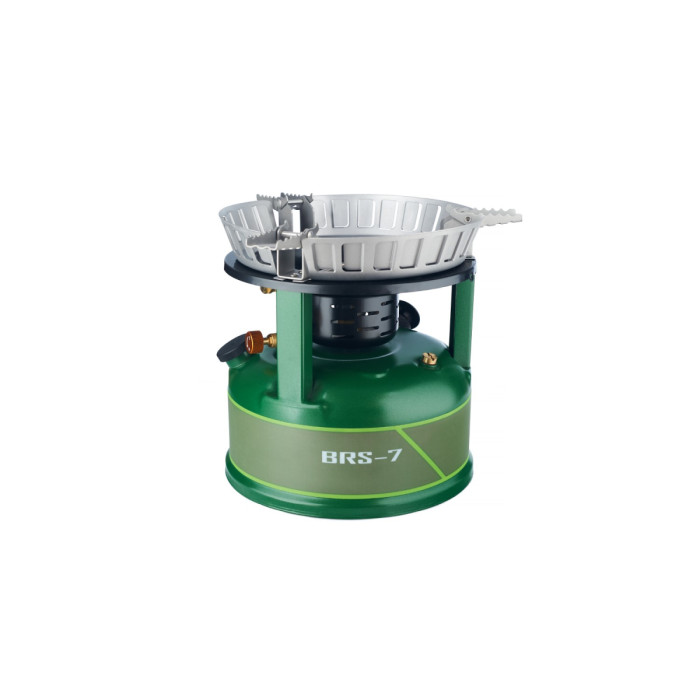 Рідкопаливний пальник BRS-7 для туристичної діяльності, активного відпочинку. Працює на неетильованому бензині (рекомендовано - 95 і вище; допустимо - 92) та дизелі. Потужність досягає 9800 Вт. Витрата палива: 425 грамів...