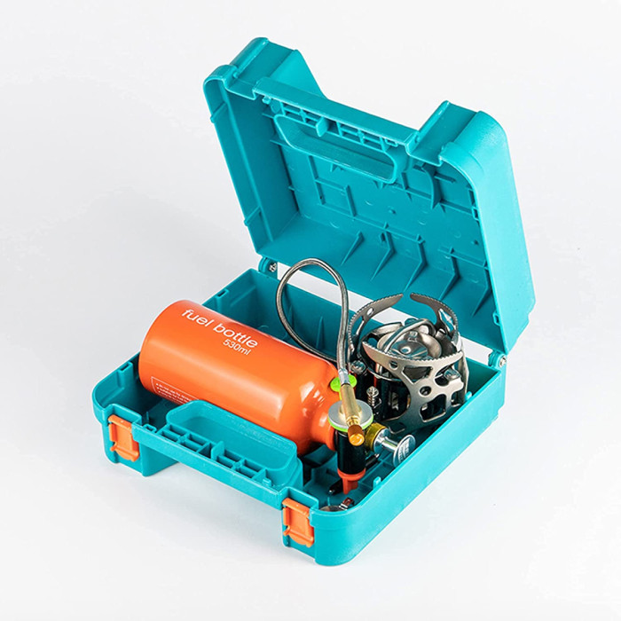 До комплекту з пальником також входить алюмінієвий насос, силумінова помпа, паливний балон на 450 мілілітрів, шланг довжиною близько 270 міліметрів. Всі предмети компактно складаються у фірмову валізу яскравого блакитного кольору, всередині якої для кожної деталі відведено своє місце. Це не тільки дозволяє зручно переносити набір, але також запобігає появі подряпин на металевій поверхні аксесуарів, що часто відбувається у разі тертя предметів один об одний при транспортуванні. Вага BRS-8A складає 501 грам.