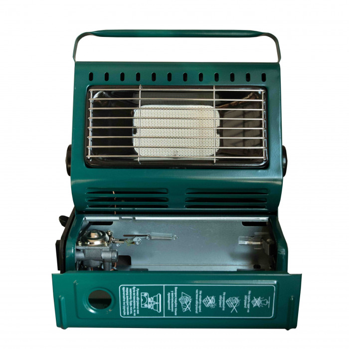 Портативний газовий обігрівач Tramp UTRG-037 з керамічним нагрівальним елементом. Надійне, ефективне і безпечне рішення для обігріву наметів, вуличних шатрів, автотрейлерів, павільйонів або невеликих приміщень дачного типу. Обігрівач забезпечений клапаном контролю тиску газу і пристроєм налаштування захисту картриджа, а також зручною ручкою у верхній частині корпусу для перенесення. Обігрівач забезпечений додатковим запобіжником мимовільної подачі газу і включення п'єзопідпалу.
